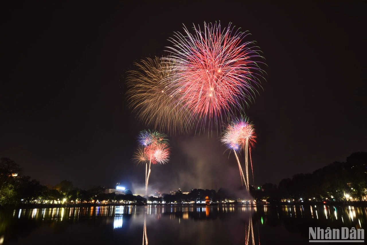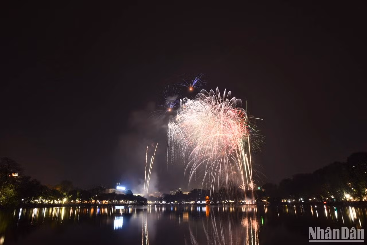 | 除夕之夜,河内上空绽放绚丽烟花迎接新年。 |