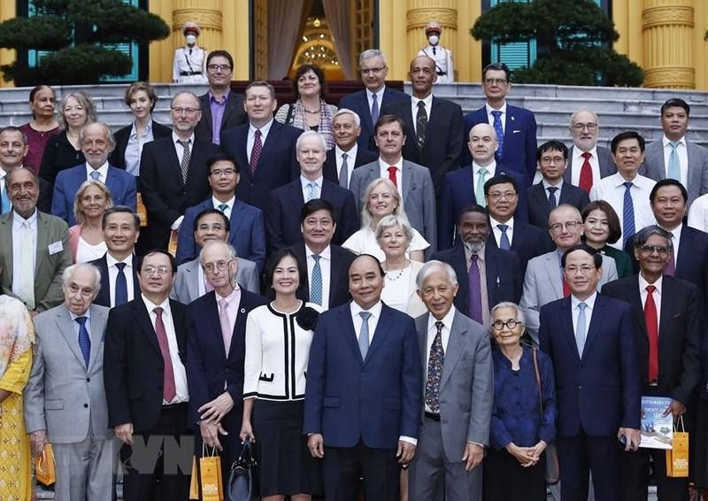 9月16日下午,越南国家主席阮春福在主席府会见了赴越南出席“科学、道德和人类发展”研讨会的诸位国际科学家和诺贝尔奖获得者。越南科学技术部部长黄成达,“相遇越南”科学教育组织主席陈青云教授在座。