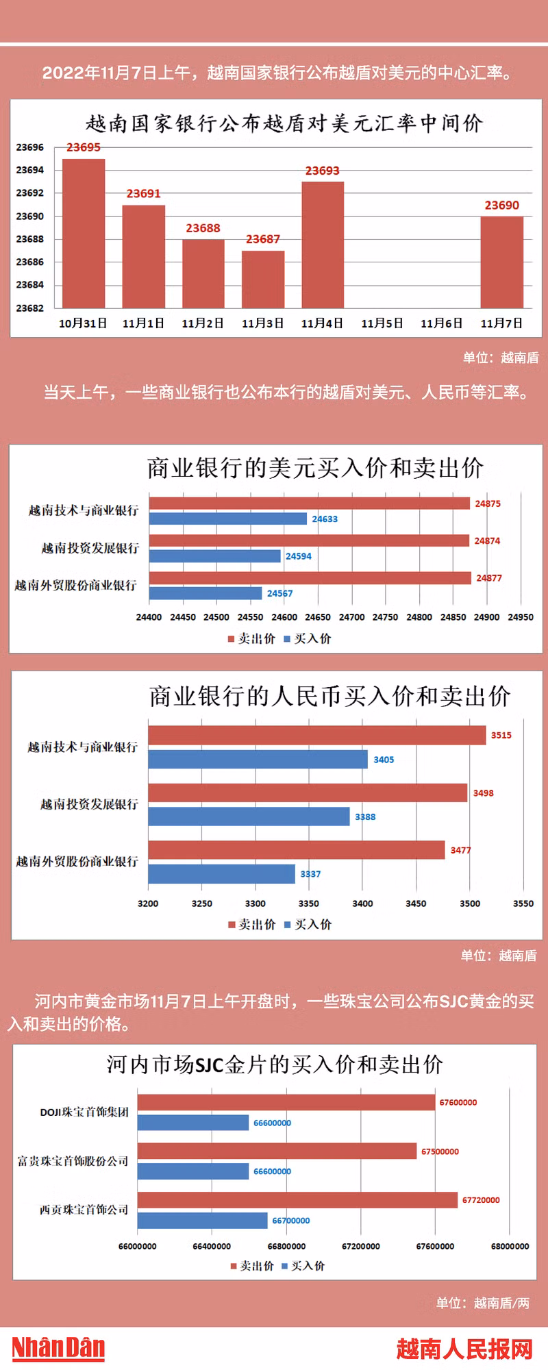 2022年11月1日上午,越南国家银行所公布的越盾对美元的中心汇率为23690。