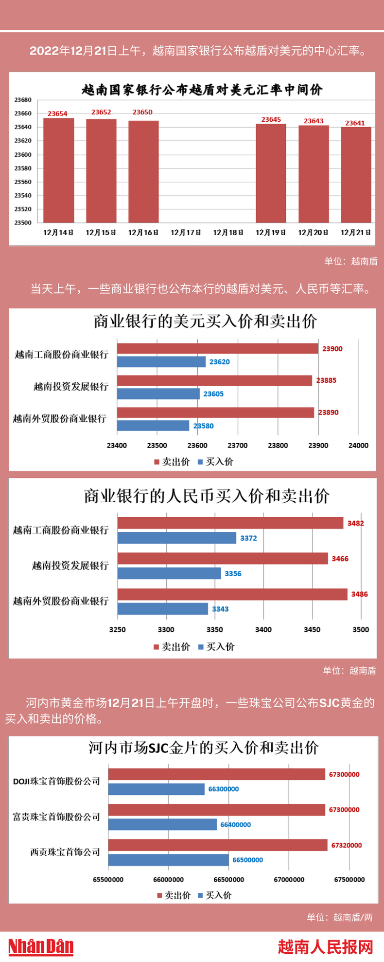 2022年12月21日上午,越南国家银行所公布的越盾对美元的中心汇率为23641。