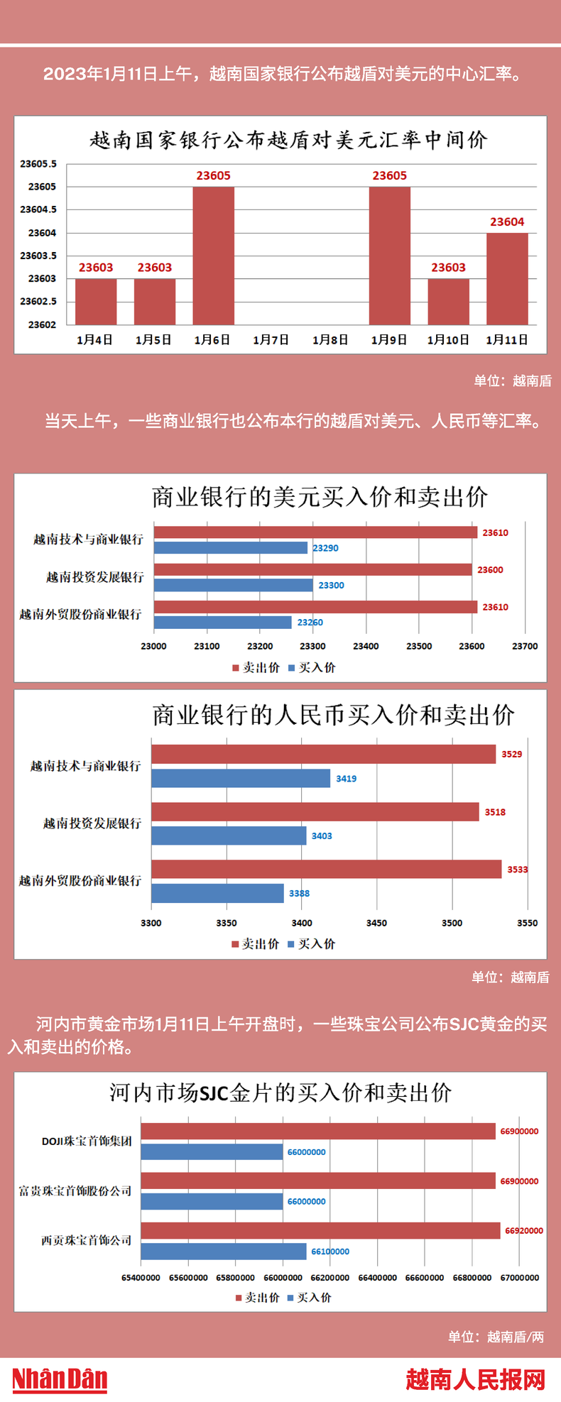 2023年1月11日上午,越南国家银行所公布的越盾对美元的中心汇率为23604。