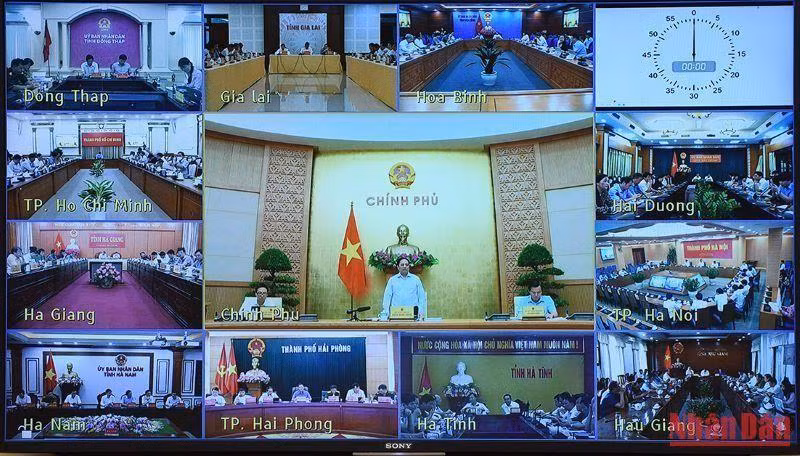 河内市委书记丁进勇,各省、直辖市的省市委书记、人民委员会主席在分会场出席会议。