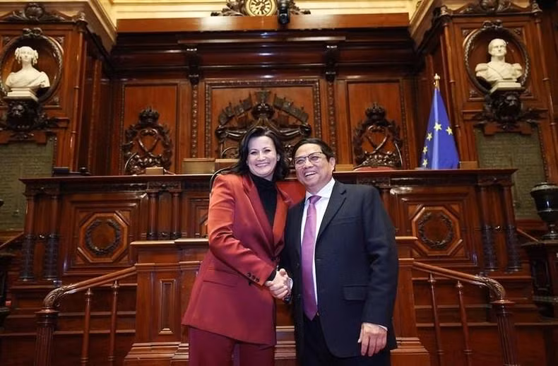 越南政府总理范明正会见比利时参议长斯蒂芬妮·德奥斯。(图片来源:越通社)