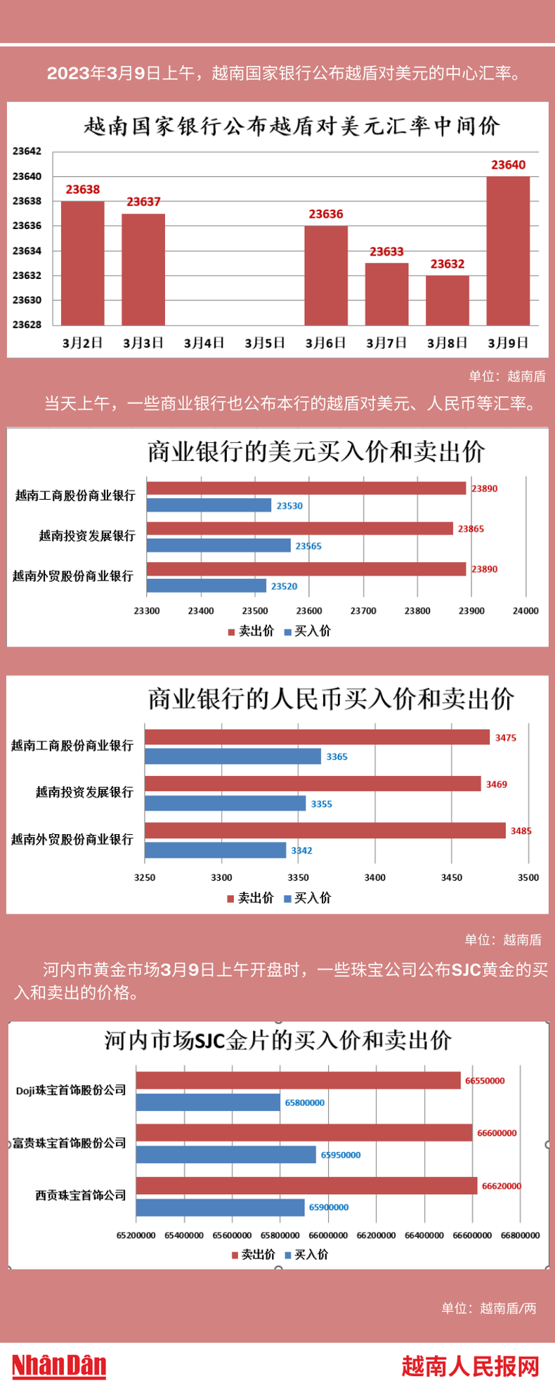 2023年3月9日上午,越南国家银行所公布的越盾对美元的中心汇率为23640。