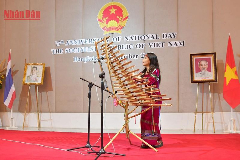 越南驻泰国大使潘志成发言时肯定了九·二国庆节在越南民族史上的重大意义,盘点了77年来国家建设与发展、经济社会发展及融入国际社会过程中所取得值得骄傲的成就。