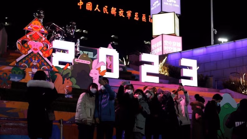 在日本东京庆祝新年期间释放气球。图片来源:路透社