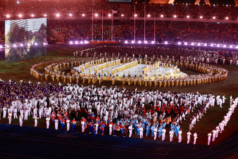 泰国体育代表团以108金96银108铜的成绩排在奖牌榜第二名,印度尼西亚体育代表团以86枚金牌位列第三。