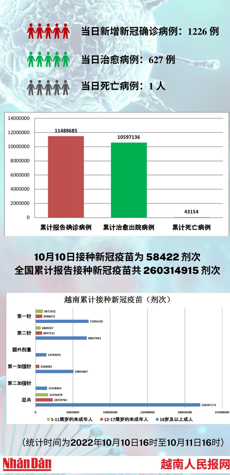 10月11日越南新增新冠确诊病例1226例【图表新闻】