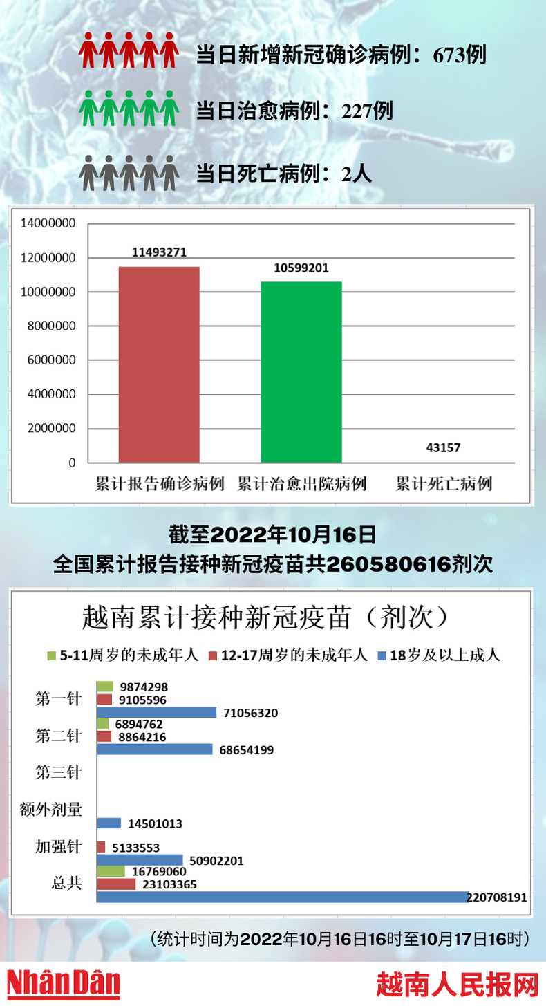10月17日越南新增新冠确诊病例673例【图表新闻】