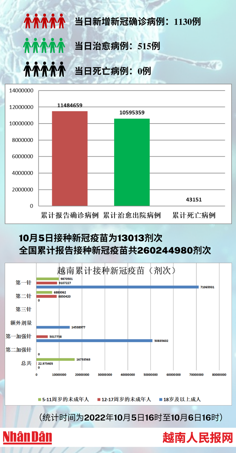 10月6日越南新增新冠确诊病例1130例【图表新闻】