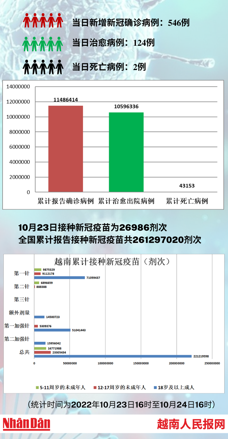10月24日越南新增新冠确诊病例546例【图表新闻】