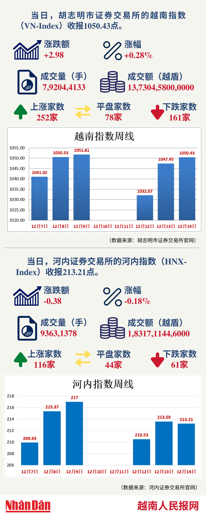 12月14日越南证券市场数据一览 【图表新闻】
