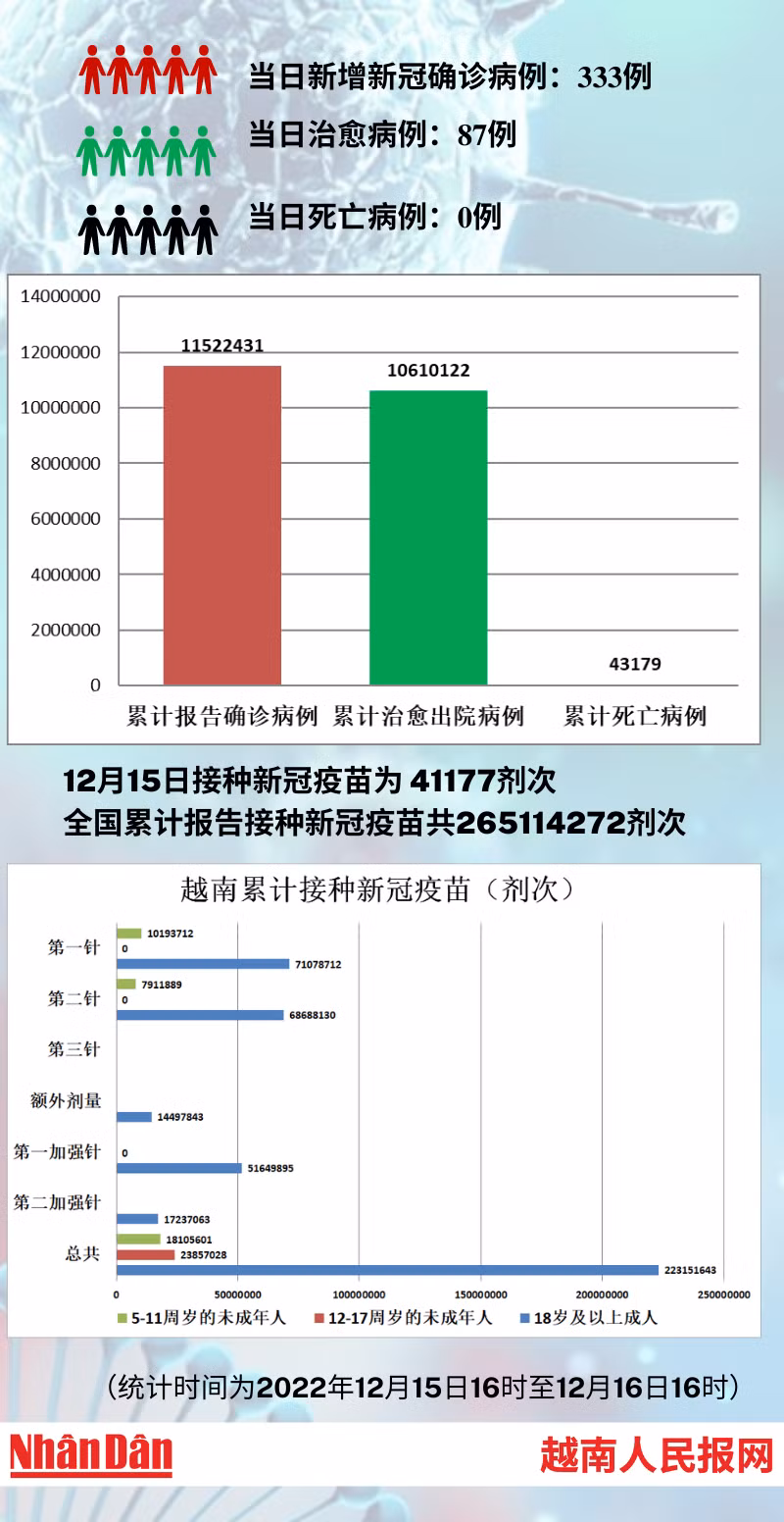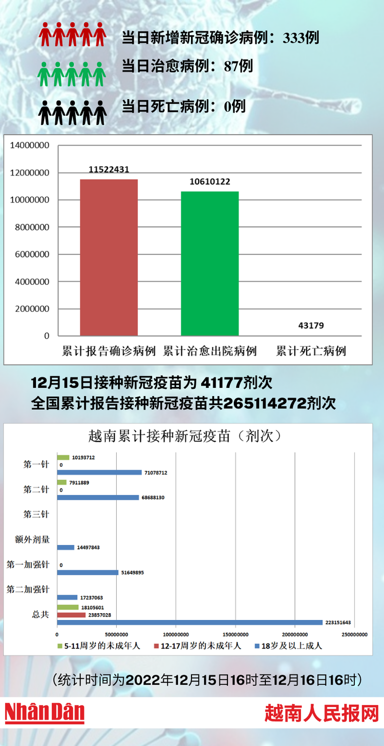 12月16日越南新增新冠确诊病例333例【图表新闻】