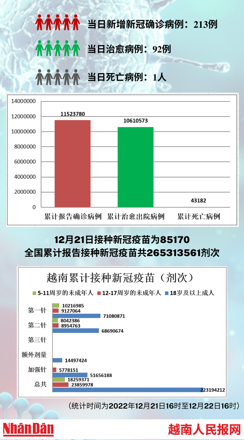 12月22日越南新增新冠确诊病例213例【图表新闻】