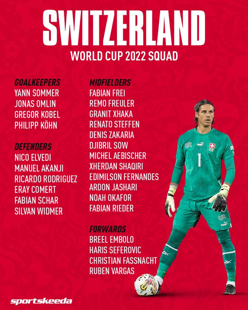 门将:扬·索默(Yann Sommer)、格雷戈·科贝尔(Gregor Kobel)、乔纳斯·奥姆林(Jonas Omlin)、菲利普·库恩(Philipp Kohn)