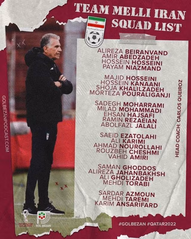 ♦ 本届世界杯伊朗26人名单如下: