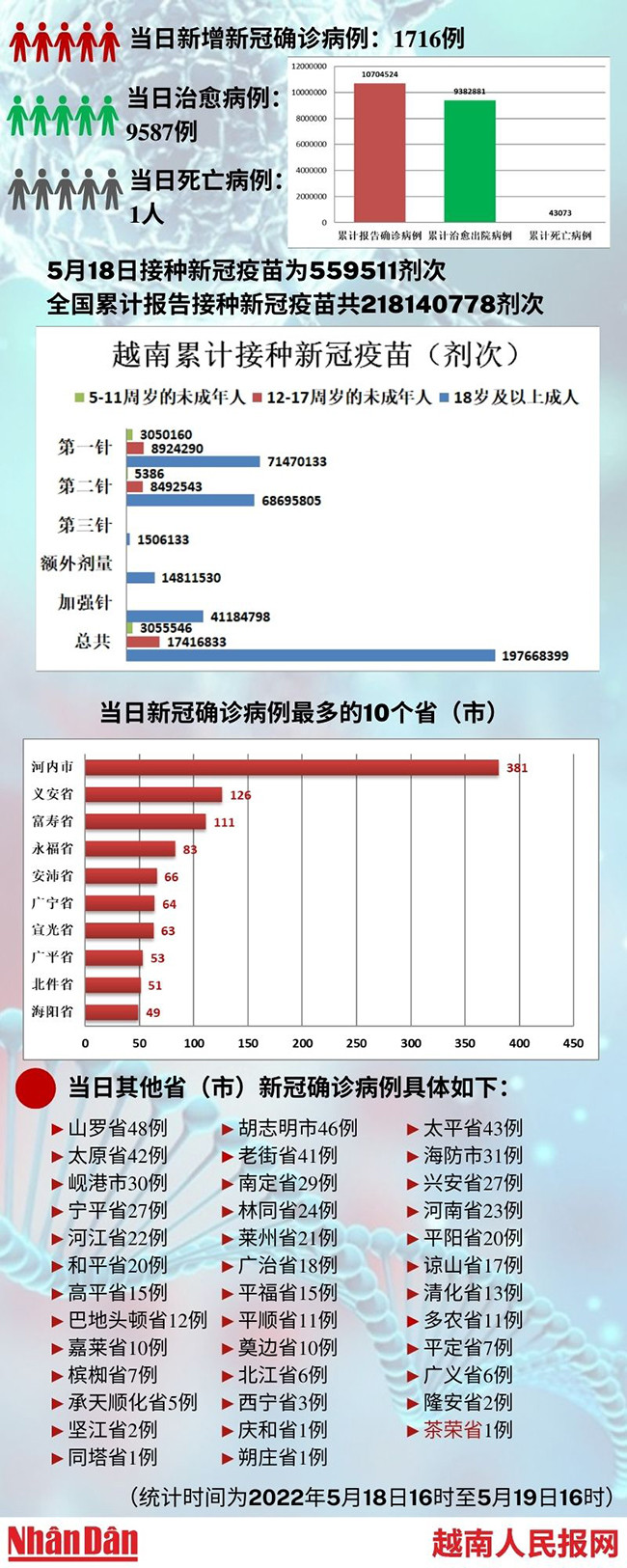 5月19日越南新增新冠确诊病例1716例【图表新闻】
