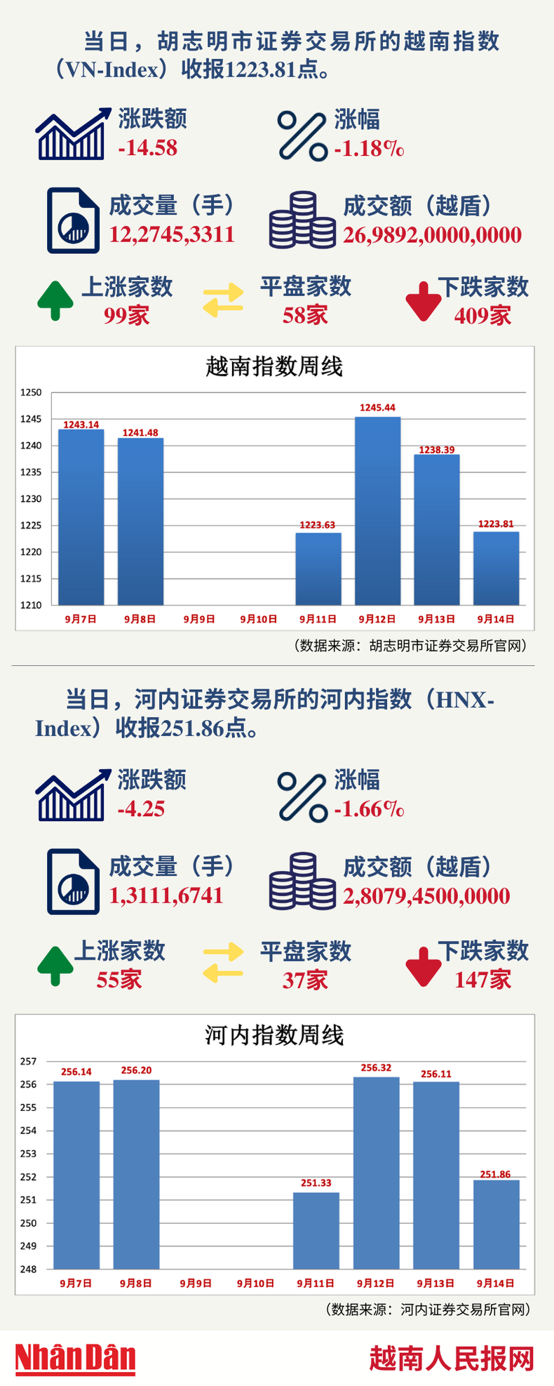 9月14日越南证券市场数据一览 【图表新闻】