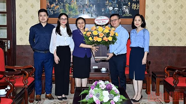 越南友好组织联合会主席阮芳娥6月14日下午造访《人民报》社庆祝越南革命新闻日97周年。