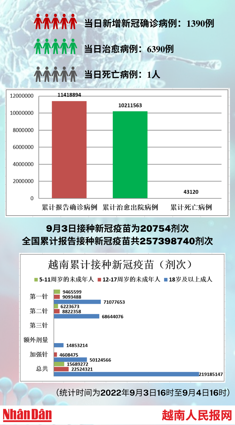 9月4日越南新增新冠确诊病例1390例【图表新闻】