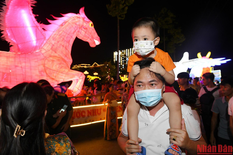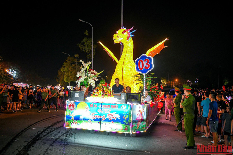 | 儿童们坐在中秋节模型车上参加游行。 |