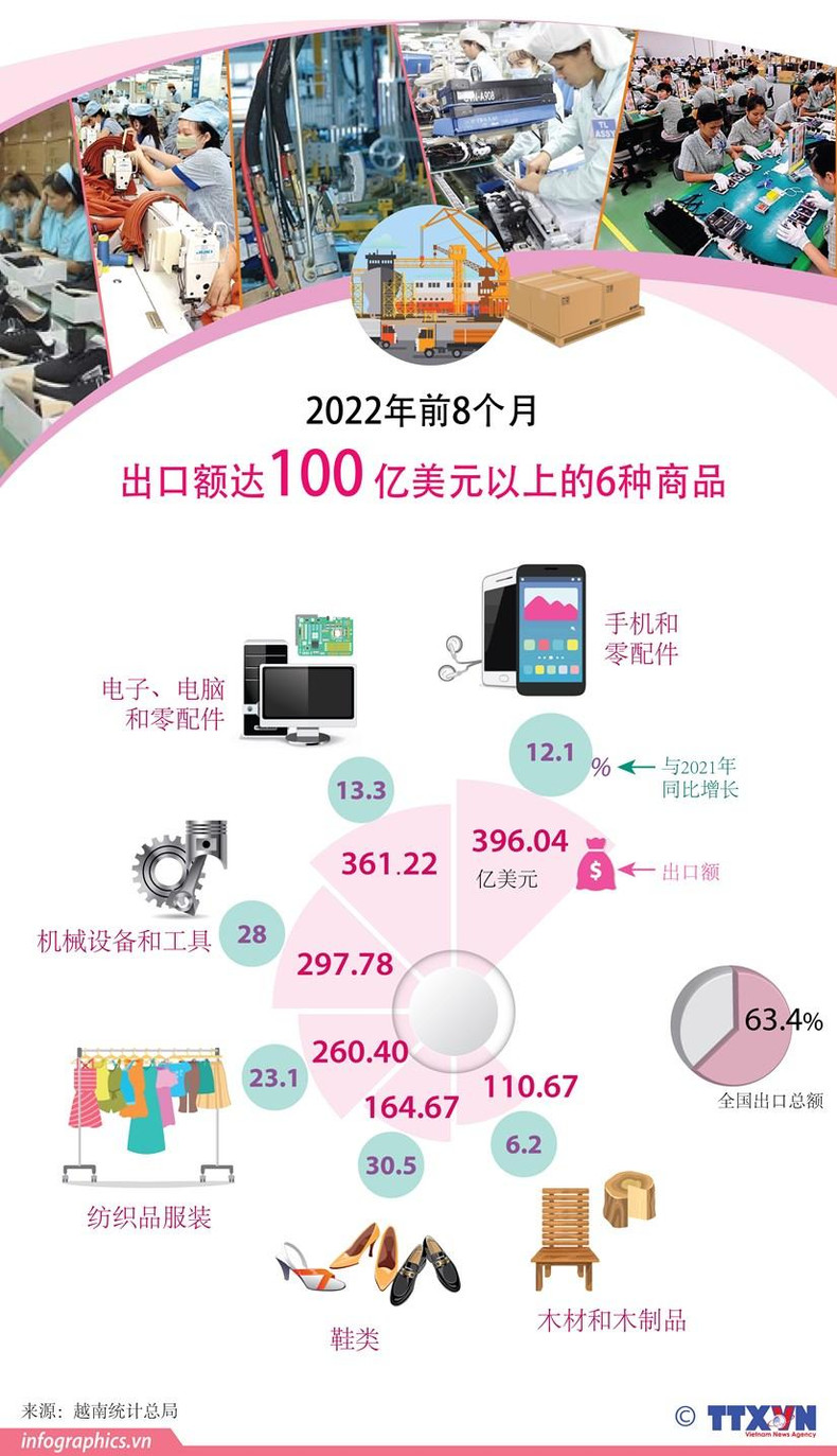 2022年8月出口额达100亿美元以上的6种商品【图表新闻】