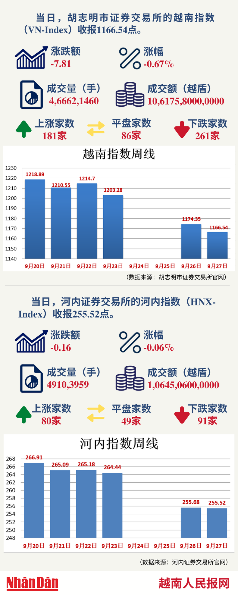 9月27日越南证券市场数据一览 【图表新闻】