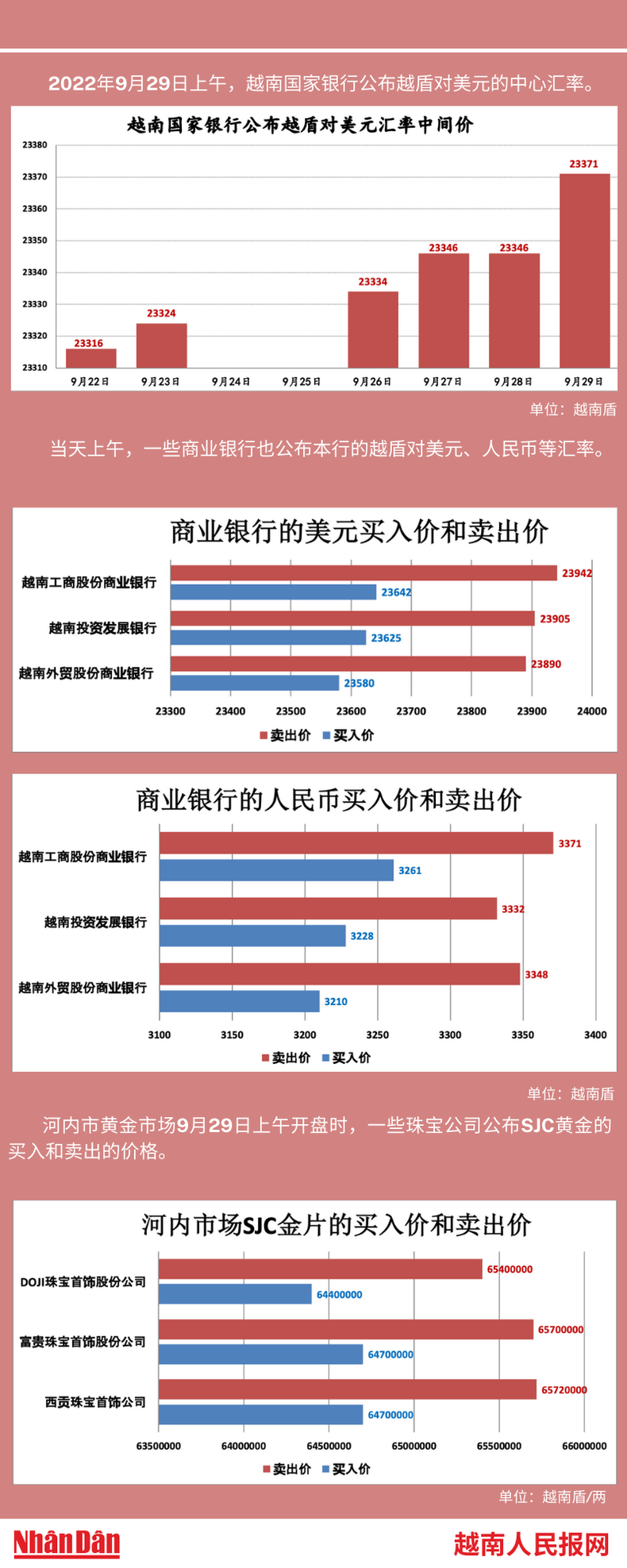 2022年9月29日上午,越南国家银行所公布的越盾对美元的中心汇率为23371。