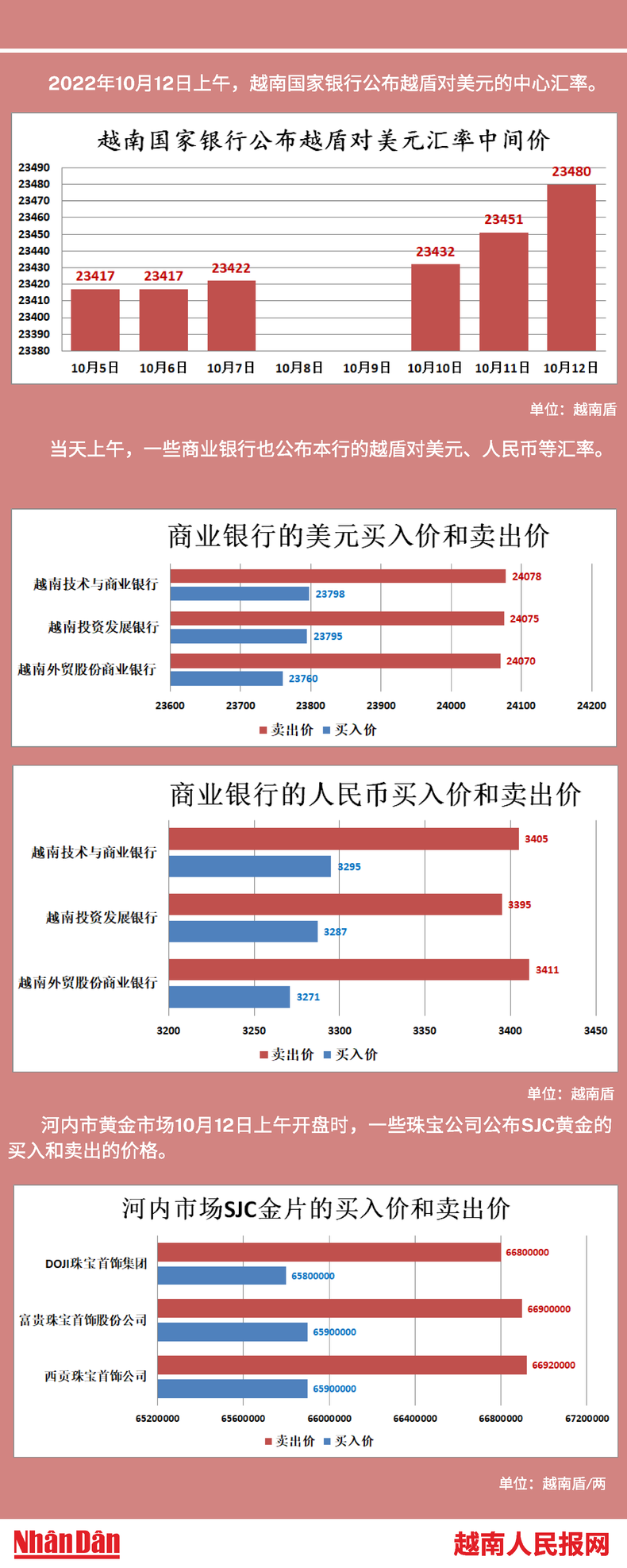 2022年10月12日上午,越南国家银行所公布的越盾对美元的中心汇率为23480。