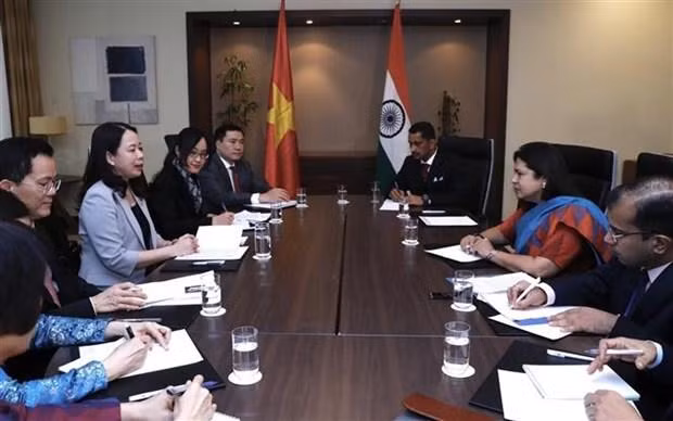 国家副主席武氏映春强调,越南重视与印度的全面战略伙伴关系,建议今后两国应继续努力进一步深化和实质性全面战略伙伴关系,加强高层和各级代表团互访,大力推动和有效实施经贸、投资、旅游、文化交流等领域的合作项目和计划;采取有力措施,为双方商品更好的进军彼此市场创造便利的条件。