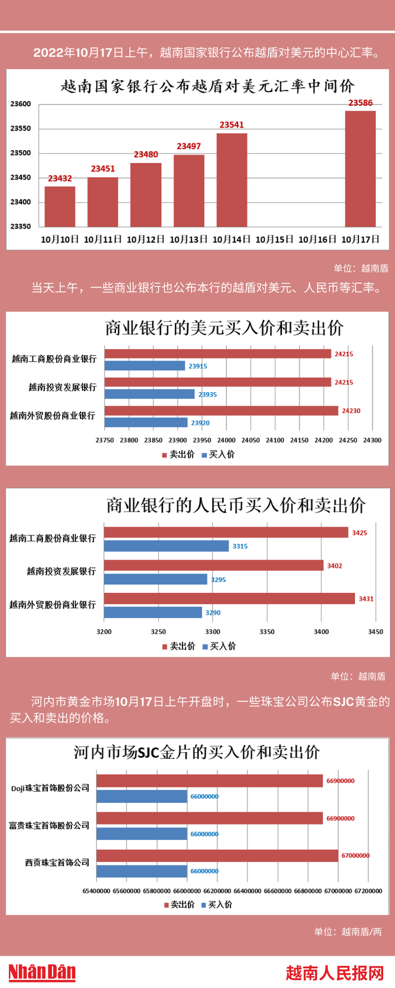 2022年10月17日上午,越南国家银行所公布的越盾对美元的中心汇率为23586。