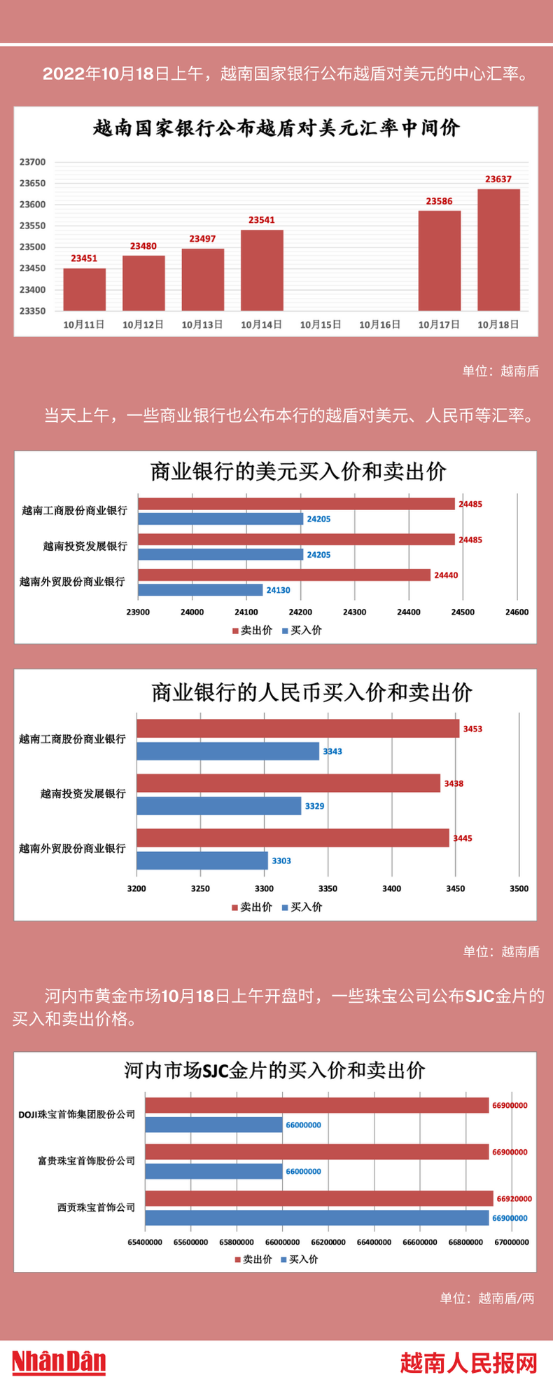 2022年10月18日上午,越南国家银行所公布的越盾对美元的中心汇率为23637。