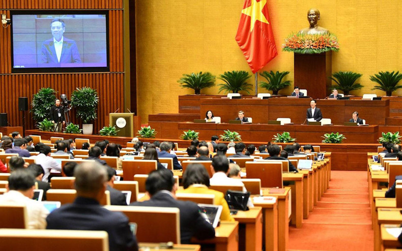 在国会副主席阮德海的指引下,国会在会堂上对无线电频率法若干条款修改补充法草案存在不同意见的若干内容进行讨论。