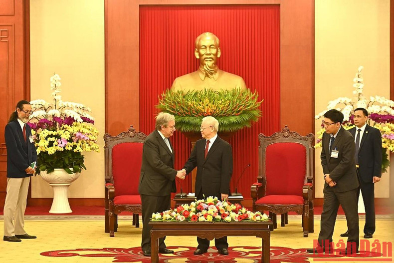 阮富仲总书记会见联合国秘书长安东尼奥·古特雷斯。