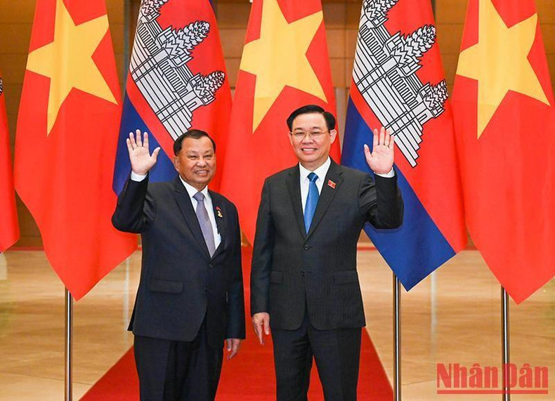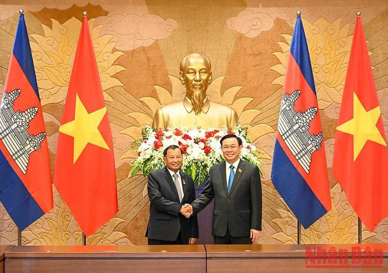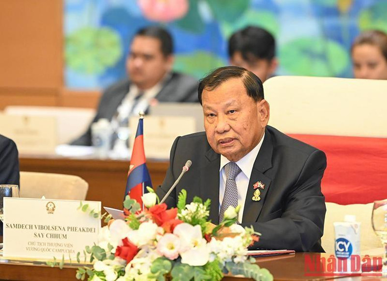 越南国会主席王廷惠与柬埔寨参议院主席赛冲举行会谈。