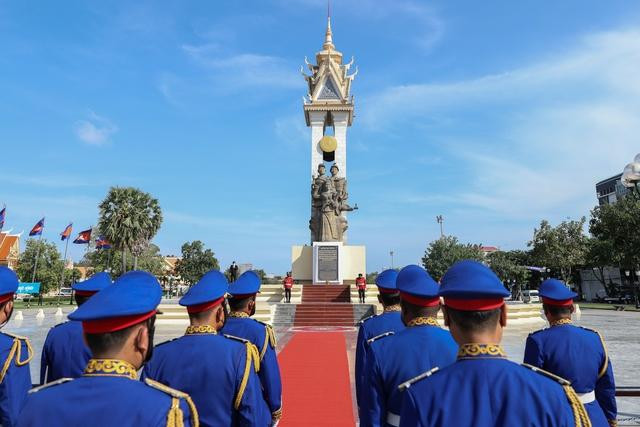 范明正总理参加柬埔寨独立纪念碑的缅怀仪式。