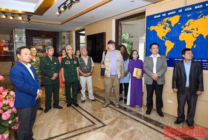 史蒂夫·埃德蒙茨先生携夫人及各位代表参观《人民报》传统展室。(维玲 摄)