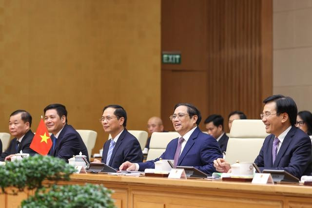 范明正总理和杰辛达·阿德恩总理举行会谈。