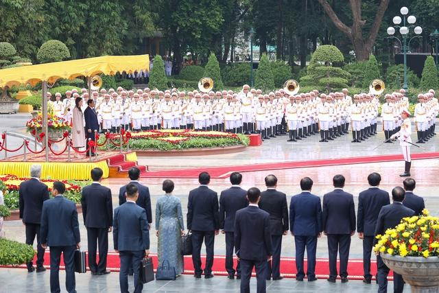 欢迎仪式举行之前,杰辛达·阿德恩总理前往胡志明主席陵敬献花圈并入陵瞻仰胡志明主席遗容。
