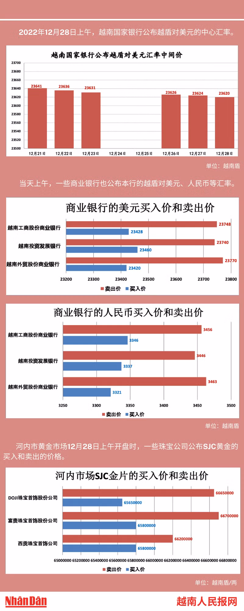 2022年12月28日上午,越南国家银行所公布的越盾对美元的中心汇率为23620。
