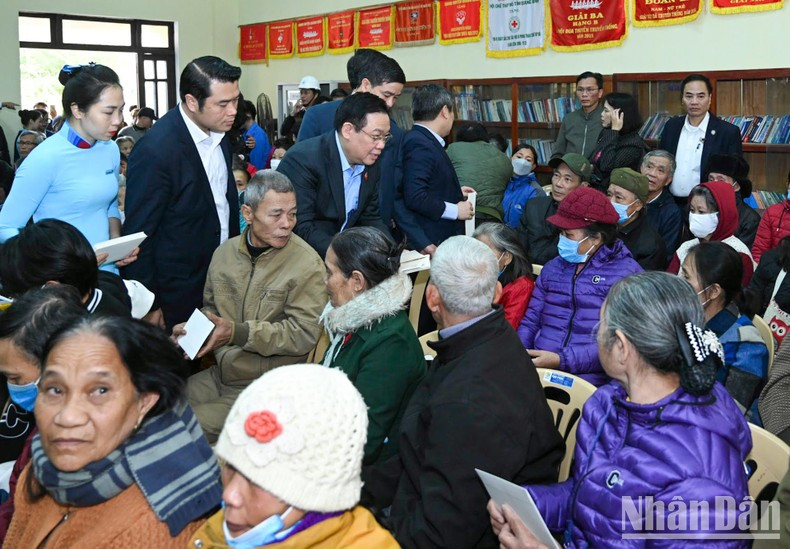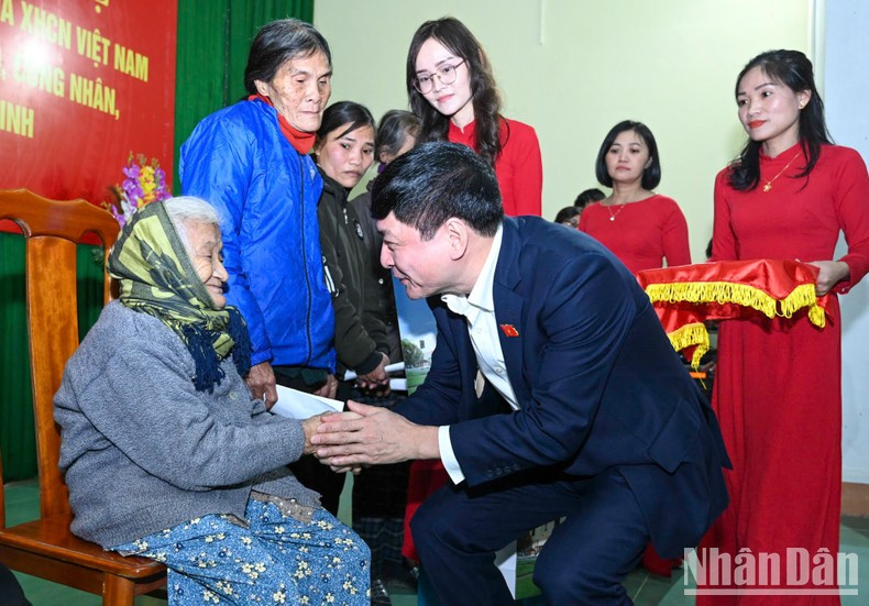 国会主席王廷惠和广平省委书记武大胜向广宁县抚恤政策家庭、贫困户送春节礼物。