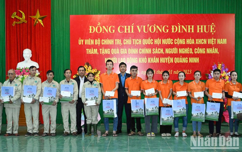 国会主席王廷惠向广宁县勇宁乡抚恤政策家庭、贫困者、橙毒剂二噁英受害者、特困工人和劳动者并向其送春节礼物并致以新春祝福。