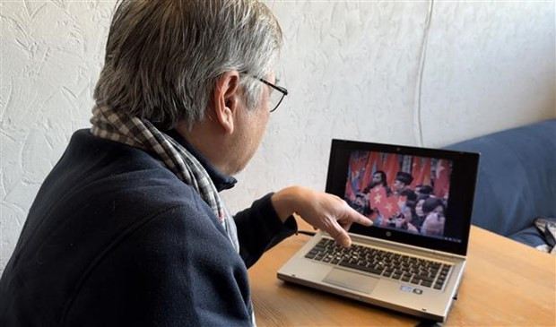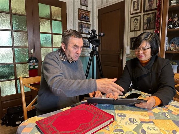 米歇尔先生回顾其以法国共产党成员身份在越南代表团工作的4年工作经历。(图片来源:越通社)