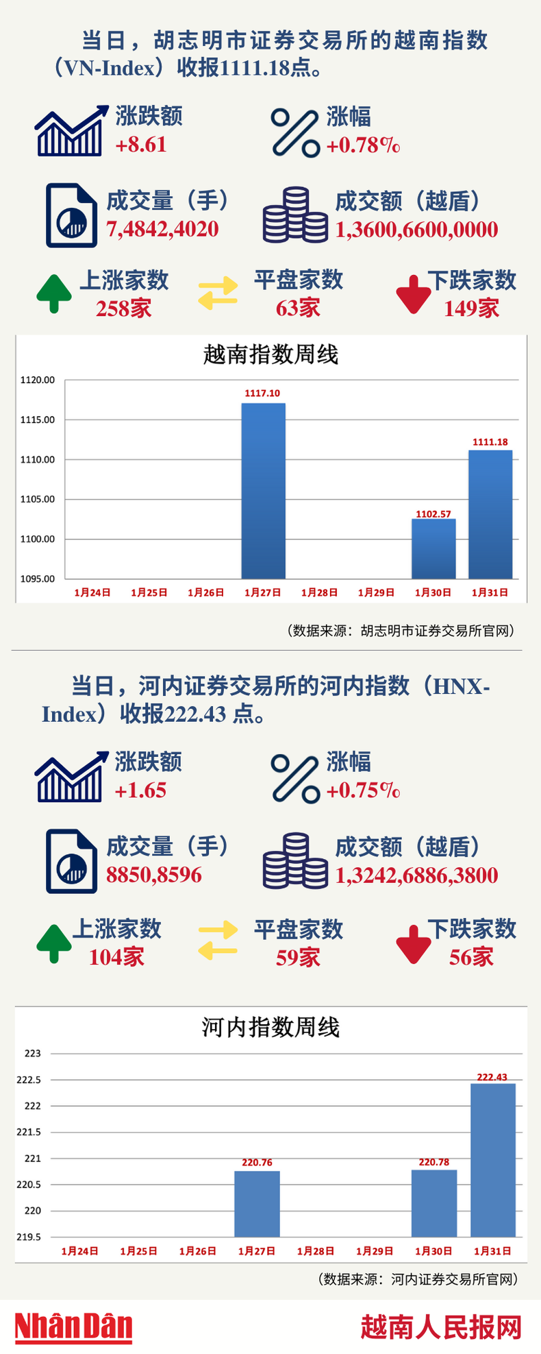 2023年1月31日越南证券市场数据一览【图表新闻】