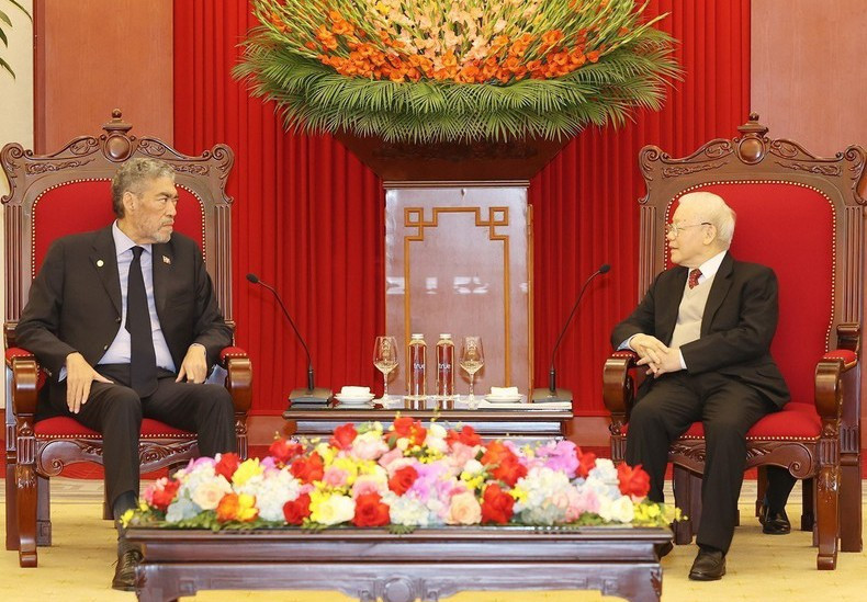 越共中央总书记阮富仲会见多米尼加左派团结运动党总书记、政府地区一体化政策部长米格尔·梅希亚。(图片来源:越通社)