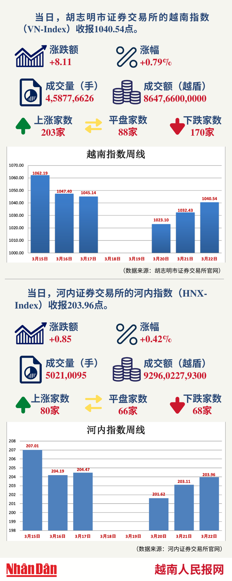 2025年10月30日星期四 05:05 10月30日越南证券市场数据一览 【图表新闻】 当天,胡志明市证券交易所的越南指数(VN-Index)和河内证券交易所的河内指数(HNX-Index)分别收报1669.57点和266.96点。