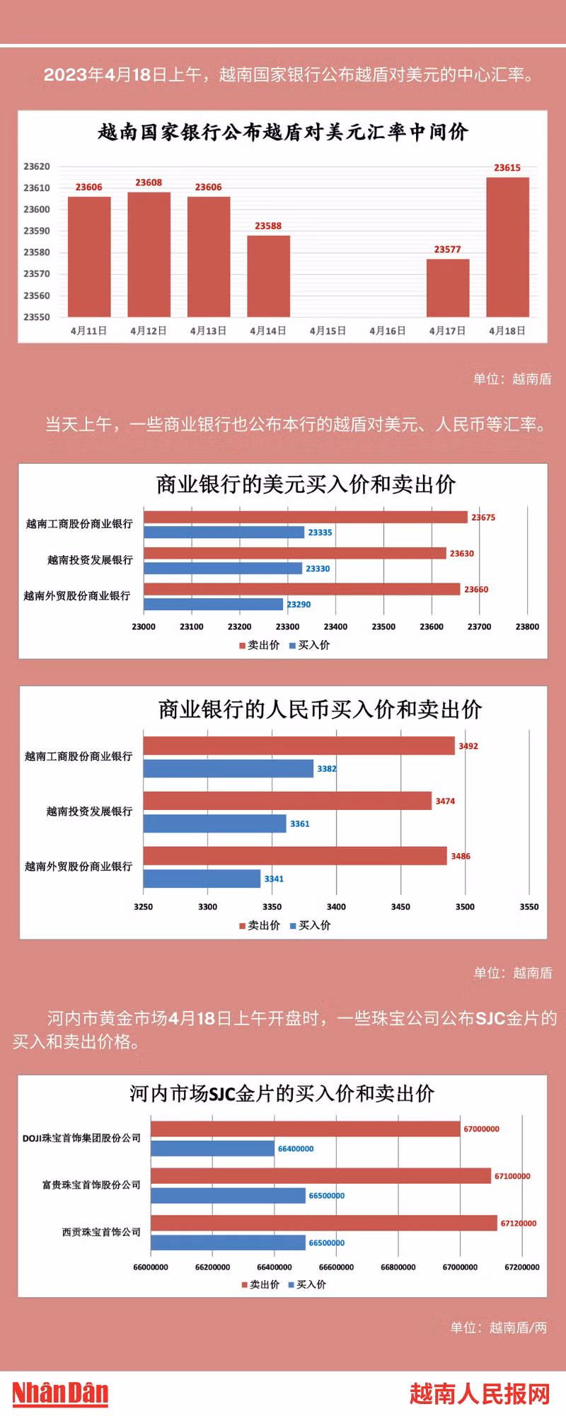 2023年4月18日上午,越南国家银行所公布的越盾对美元的中心汇率为235615。