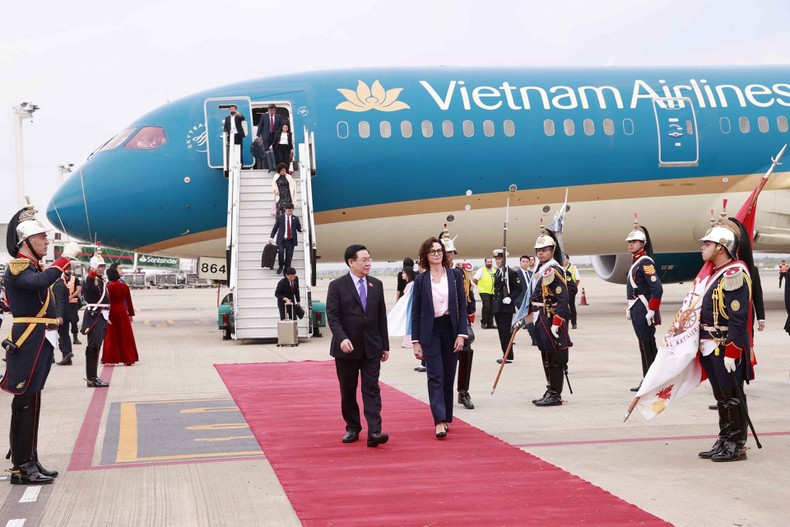 | 越南国会主席王廷惠欢迎仪式在阿根廷首都布宜诺斯艾利斯埃塞萨国际机场举行。 |