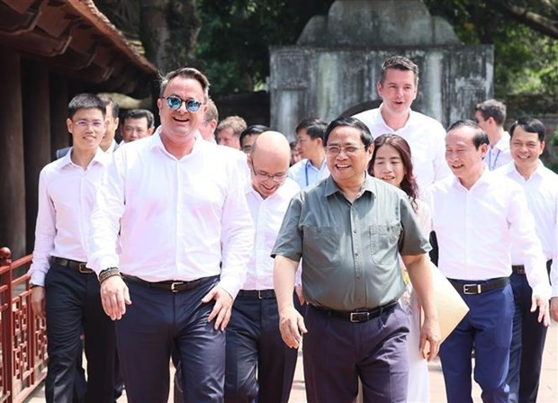 范明正总理欢迎卢森堡在金融、银行、物流、能源转换等领域具有实力的领先企业代表团陪同格扎维埃·贝泰尔首相访越并出席越南-卢森堡企业论坛。
