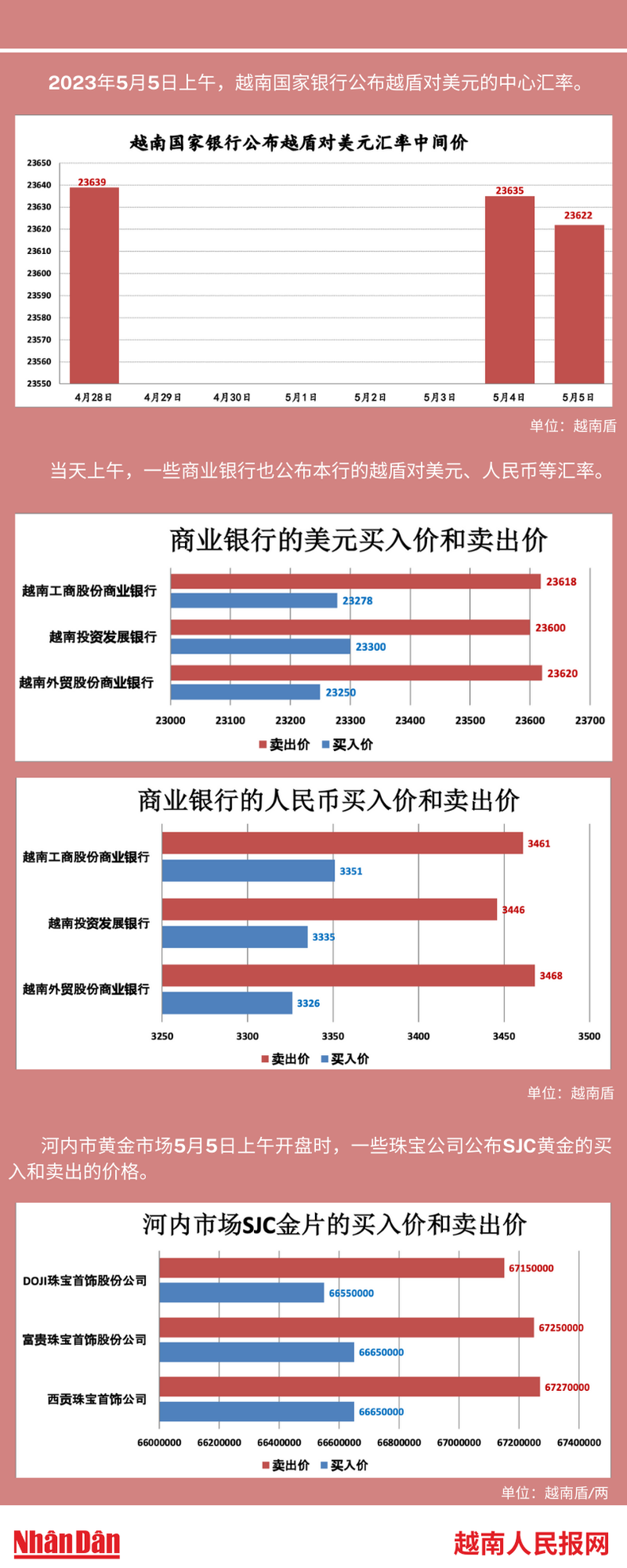 2023年5月5日上午,越南国家银行所公布的越盾对美元的中心汇率为23622。